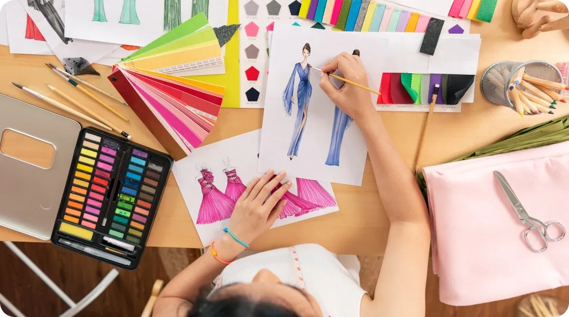 Skills required: creativity, trend awareness, sketching, and knowledge of textiles.